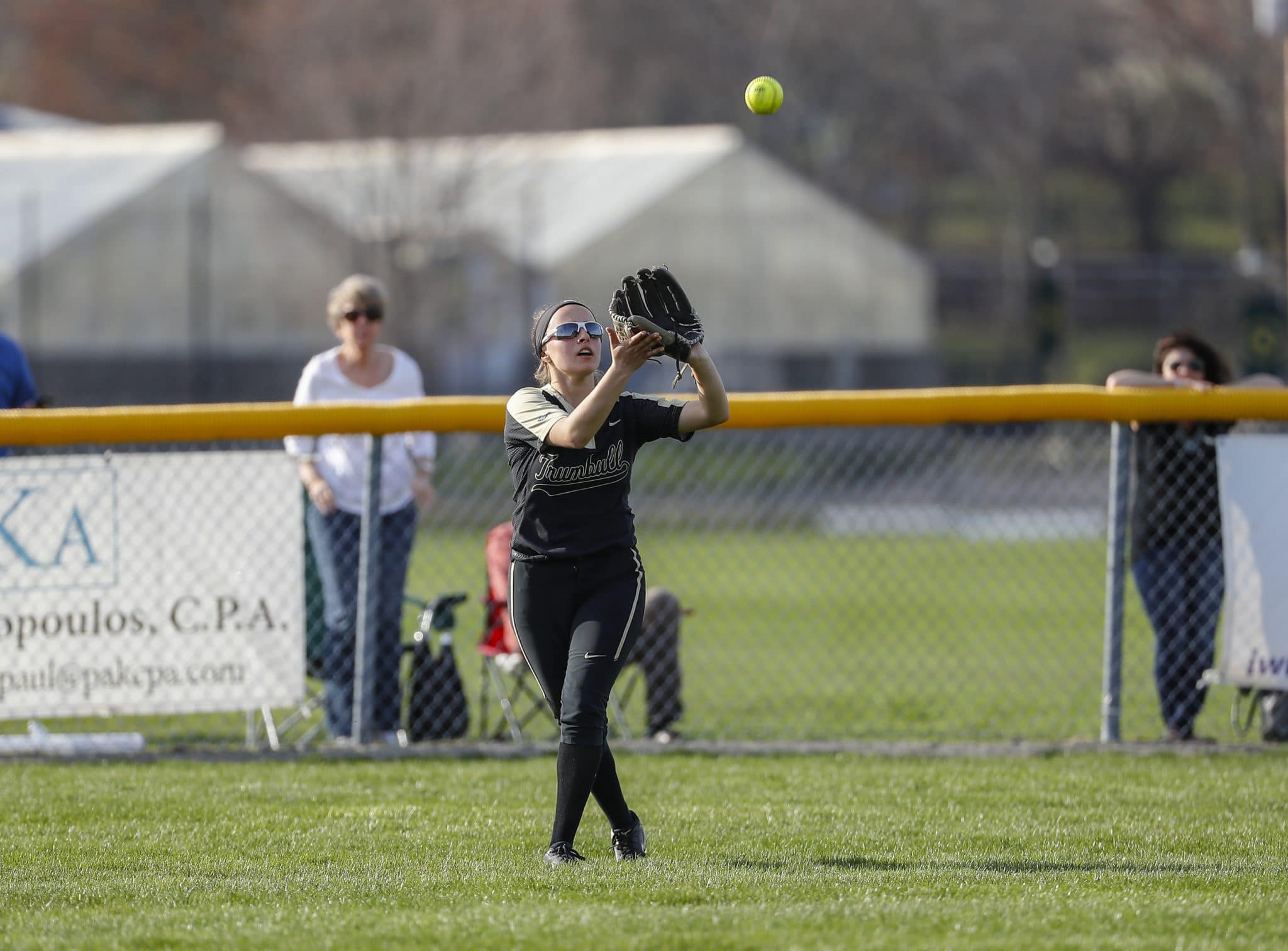 Trumbull’s Alexa Adinolfi makes a catch for an out in the outfield. Dave Ruden May 2, 2018 Leave a Comment