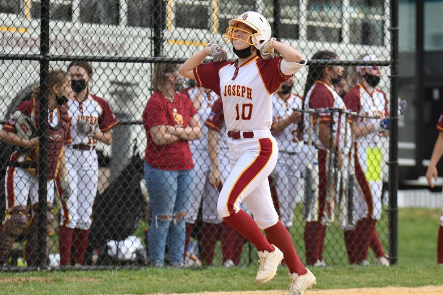 Niamh Dougherty heads for home after hitting a home run.