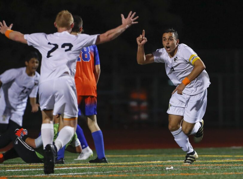 Trumbull’s Jason Weinstein celebrates the go ahead goal.