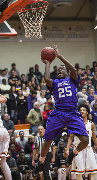 Westhill high school’s Nathanial Jefferson goes up for a shot during a boys basketball game against Stamford high school played at Stamford high school, Stamford, CT on Wednesday, December 7th, 2015.