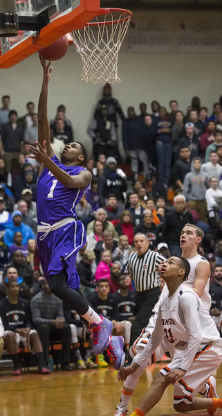 Westhill high school’s Jeremiah Livingston going in for a layup during a boys basketball game against Stamford high school played at Stamford high school, Stamford, CT on Wednesday, December 7th, 2015.