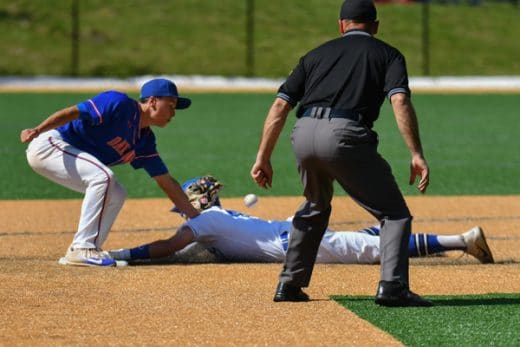 Aaron Sears of Darien safely steals second base.