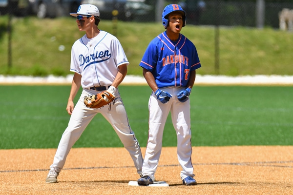 Javon Hernandez reacts after leading off the game with a double for Danbury. Dave Ruden May 18, 2019 Leave a Comment